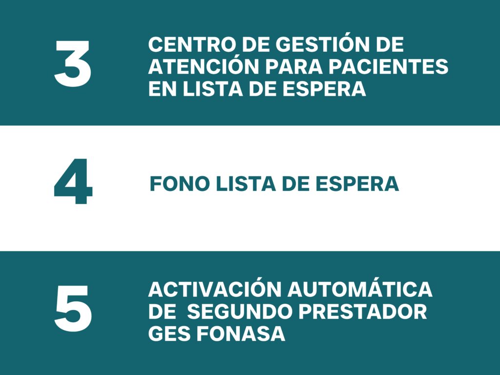 Activación automática del Segundo Prestador GES FONASA . El desconocimiento por parte de los usuarios del beneficio de activación del Segundo Prestador GES contribuye al incremento de las listas de espera. Dado el aumento en las listas de espera asociadas al cáncer y considerando que es la principal causa de muerte en Chile, se sugiere que, por un tiempo determinado, se automatice la activación para patologías GES priorizadas por morbimortalidad, comenzando con todos los cánceres GES.