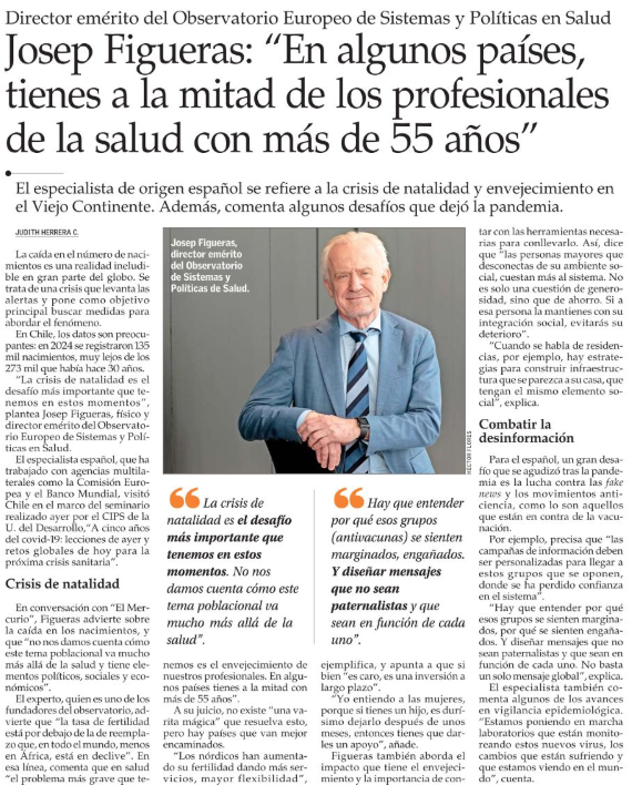 Te dejamos la entrevista que le realizaron a Josep Figueras, invitado a nuestro seminario sobre los 5 años del COVID-19, en el diario El Mercurio.