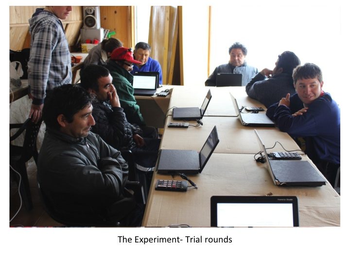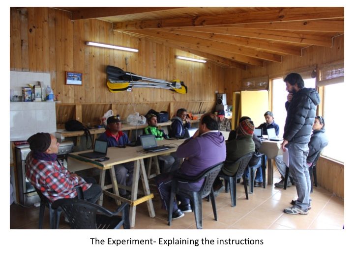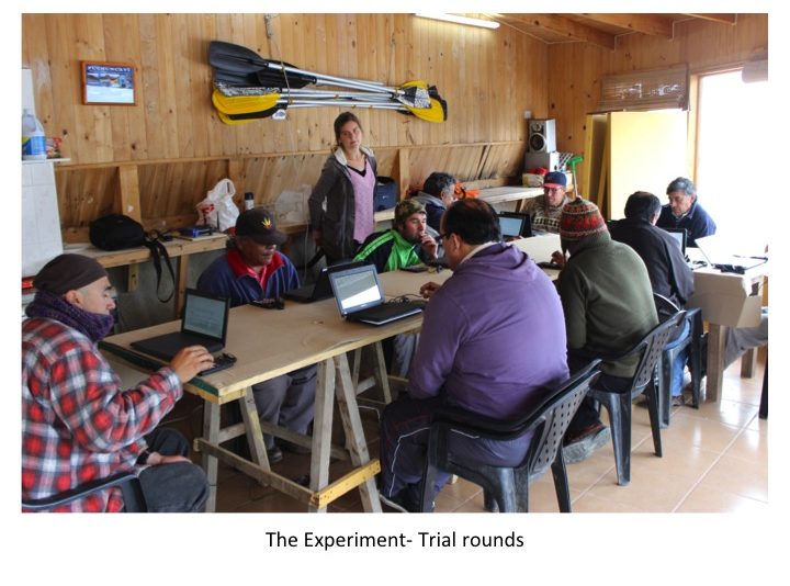 En CICS estudiamos la cooperación humana utilizando los métodos de la teoría de juegos conductuales y la economía experimental. En lugar de utilizar estudiantes universitarios como sujetos experimentales, llevamos nuestro laboratorio al campo. Nuestros sujetos pertenecen a comunidades de pesca artesanal que enfrentan un dilema social de la vida real: la explotación de las pesquerías bentónicas a lo largo de la costa central de Chile. Estas comunidades pesqueras ofrecen un escenario ideal para el estudio de la cooperación, ya que cada comunidad se auto organiza para cogestionar su pesquería y aplica colectivamente sus regulaciones autoimpuestas. El desempeño de estas comunidades es muy heterogéneo, lo que permite la investigación de los determinantes del comportamiento cooperativo.