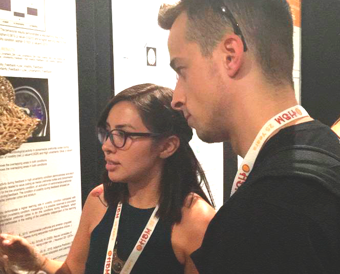 Por su parte, María Paz Martínez presentó el póster Reward magnitude increases learning rate and the activity in value-related brain areas in adolescent, cuyo trabajo investigativo trata acerca de la toma de decisiones arriesgadas durante la adolescencia, y cómo estas decisiones se asocian a una mayor sensibilidad a los incentivos y un control cognitivo relativamente débil. Tras el planteamiento de una hipótesis relacionada a la magnitud de la recompensa, los cambios en la tasa de aprendizaje y/o un sesgo (positivo o negativo) en la estimación del valor, se evaluaron las áreas cerebrales asociadas a la toma de decisiones arriesgadas en adolescentes sanos mientras realizan una tarea determinada.