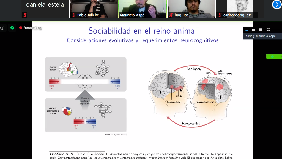 “Estamos muy contentos de la tesis de Mauricio porque es la primera de nuestra área de Neurociencia. (…) Empezó a trabajar con nosotros desde antes de su ingreso al DCCS y siempre mostró un gran interés por los estudios interdisciplinarios y, en particular, en su tesis se focalizó no solo en las conductas humanas complejas, en la toma de decisiones y en los dilemas sociales, sino que también incorporó al estudio de estos fenómenos los aspectos neurobiológicos y eso es muy interesante, porque es la primera tesis que los incorpora, siendo que es un área muy importante de nuestro Centro y de nuestro Doctorado”, dice el Dr. Pablo Billeke en relación a la investigación de Mauricio Aspé Sánchez.
