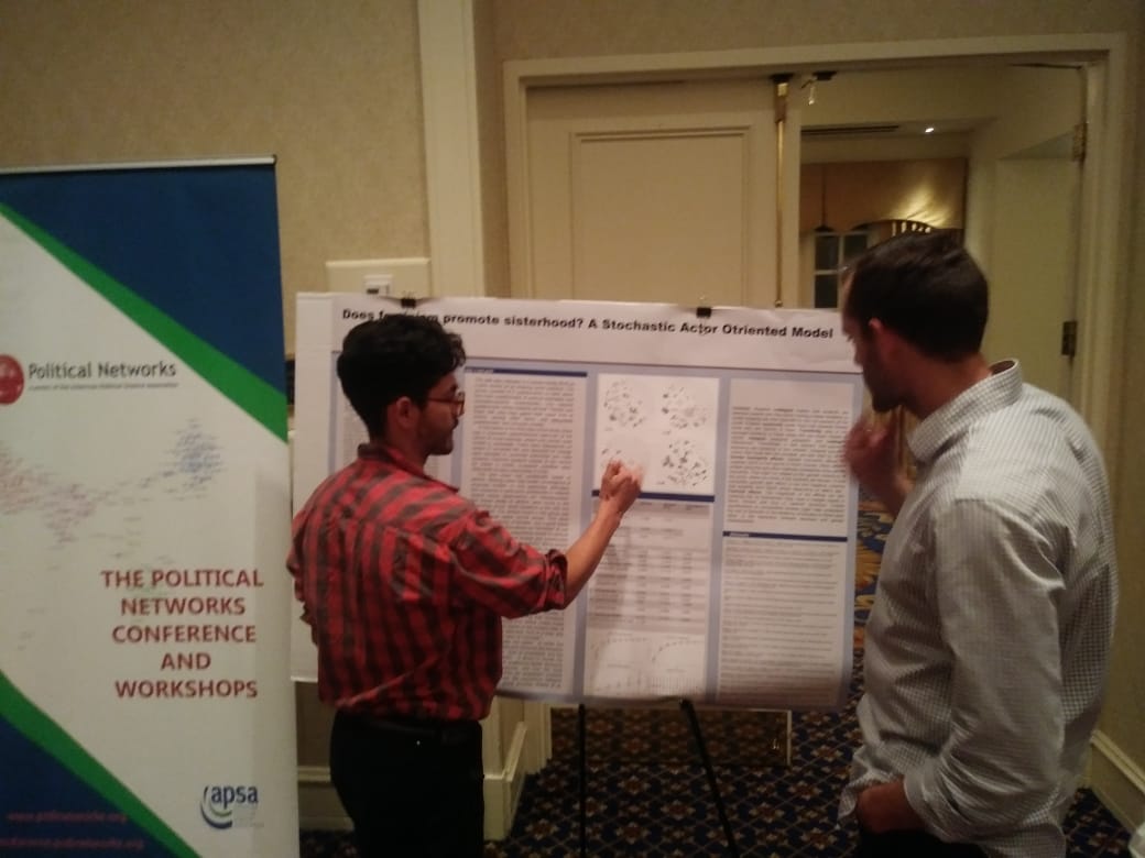 Del 29 de mayo al 1 de junio se realizó en la Universidad de Duke (Carolina del Norte, Estados Unidos), la 12° Annual Political Networks Conference & Workshop, organizada por la sección de Redes Políticas de la American Political Science Association (APSA). En representación del Doctorado en Ciencias de la Complejidad Social, asistió el estudiante de la generación 2017, Eduardo Méndez, quien presentó su póster Does feminism promote sisterhood? A Stochastic Actor Oriented Model, sobre el potencial transformador del feminismo en redes de amistad.