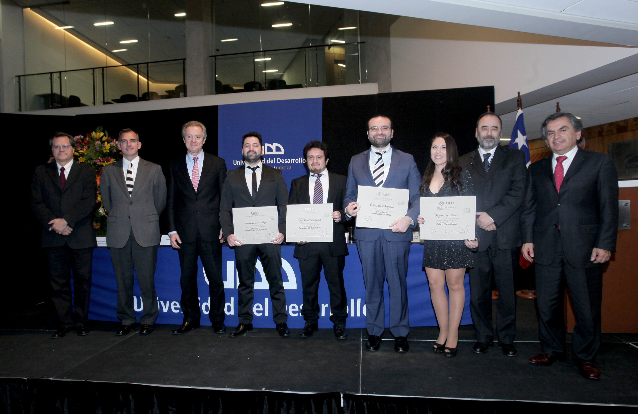Nearly 80 people, including authorities of the Faculty of Government and Medicine, professors, students of the Universidad del Desarrollo, as well as family and friends, were present at the graduation ceremony of the graduates of the Doctorate in Social Complexity Sciences of the CICS and two doctoral students of Medicine.