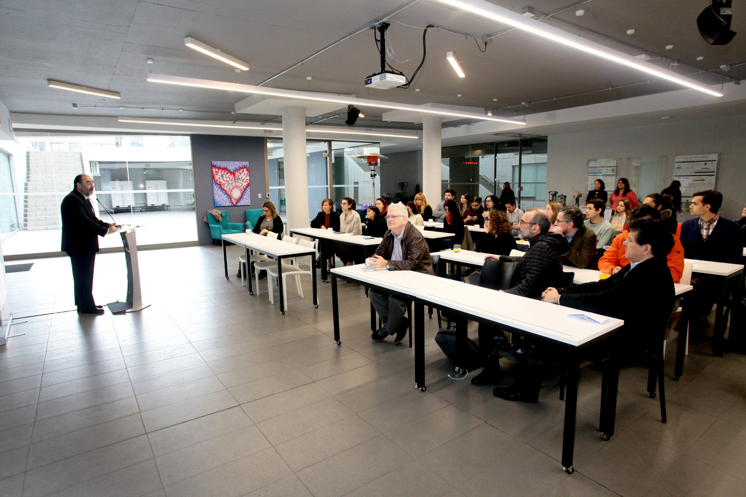 Tras la ceremonia, el Director del DCCS, Jorge Fábrega, junto a la Directora de Investigación y Doctorados, Denise Saint-Jean, dieron una charla a los alumnos nuevos para que se informaran de los lineamientos generales del funcionamiento y la relación DCCS con la Vicerrectoría de Investigación y Doctorados. Fábrega se enfocó en presentar el programa, con sus objetivos y metas, la configuración de la malla, los cursos lectivos y el desarrollo de la investigación en sus etapas iniciales. Por su parte, Saint-Jean, recalcó los beneficios institucionales, y dio a conocer los convenios para la realización de pasantías y el sistema de co-tutela con universidades extranjeras, entre otros temas.
