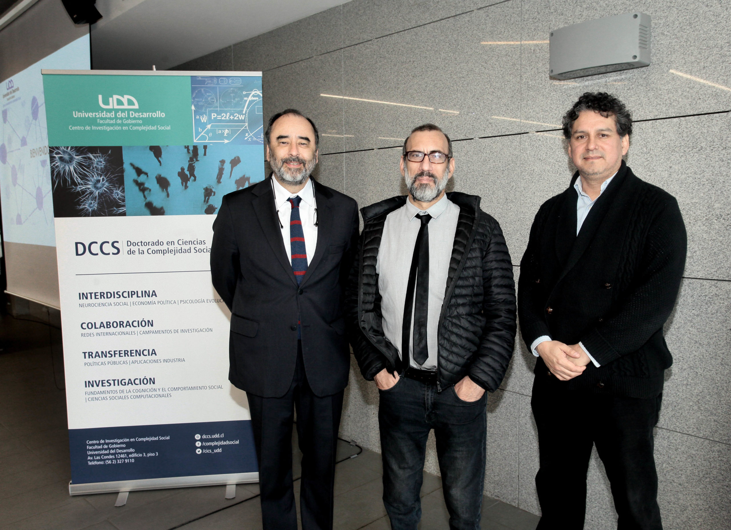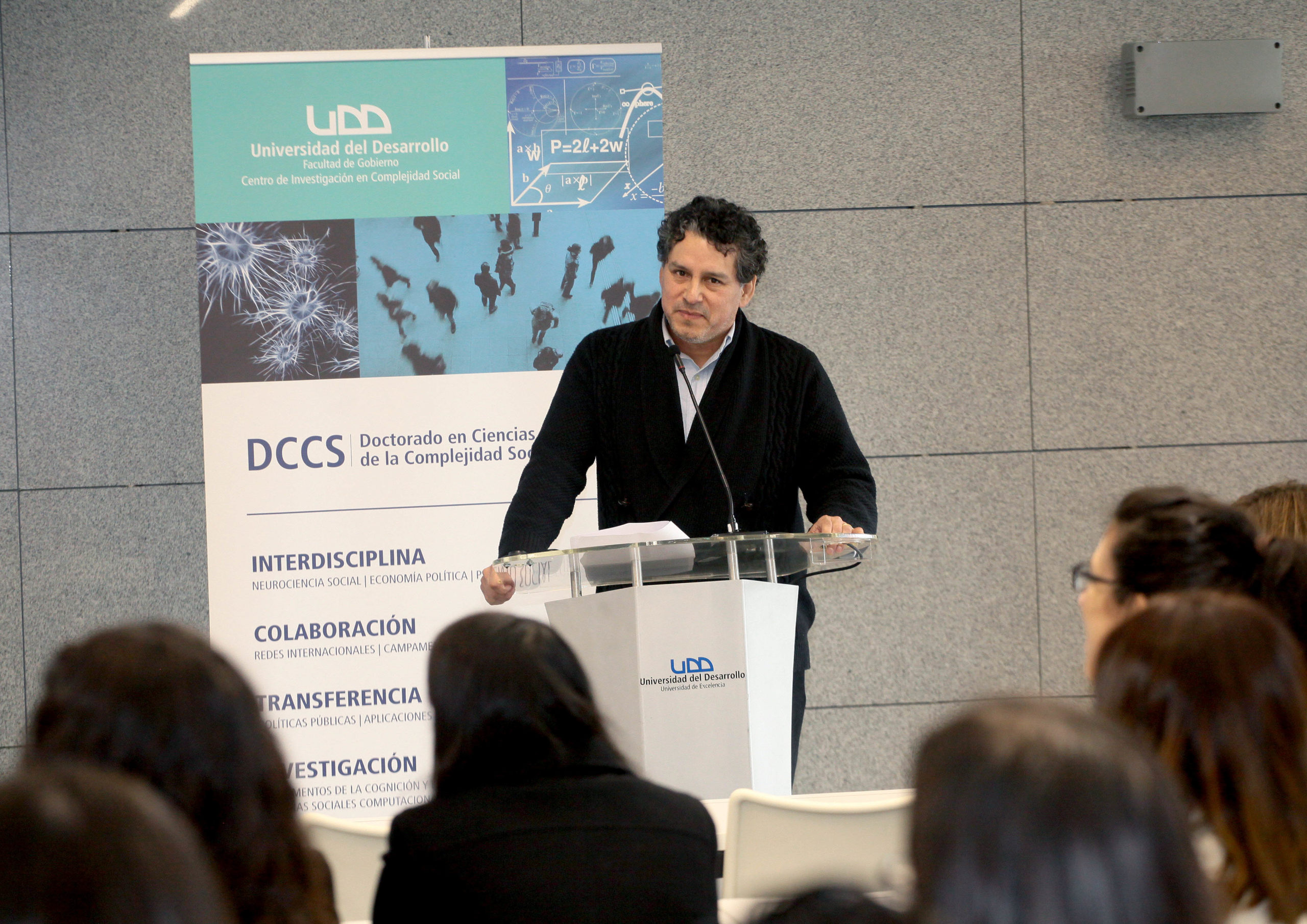 En sus palabras de bienvenida, el Director del DCCS, Jorge Fábrega, señaló que “Es posible que les haya pasado que, al momento de contar que van a iniciar un doctorado en Ciencias de la Complejidad Social les hayan preguntado ‘qué es eso de la complejidad social’. Esa pregunta la seguirán recibiendo. Y sus respuestas irán cambiando a medida que avancen en el programa (…). Lo que les puedo adelantar es que, aquí, esa complejidad se aborda desde tres pilares: interdisciplina, un enfoque cuantitativo y redes abiertas y extensas de colaboración. Los invitamos a contribuir en este proceso, a que se atrevan a aportar a lo grande, a que puedan extender las redes y, por último, a que todo ello se vea reflejada en una investigación con sentido”. Al respecto, el Decano de la Facultad de Gobierno, Eugenio Guzmán, sostiene que los estudiantes que ingresan “tienen un tremendo desafío, no solamente de ser mejores o iguales que las generaciones anteriores sino también de representar esto que se ha hecho aquí, que tiene que ver con un trabajo colaborativo, de mucha dedicación a la actividad académica y la investigación”.