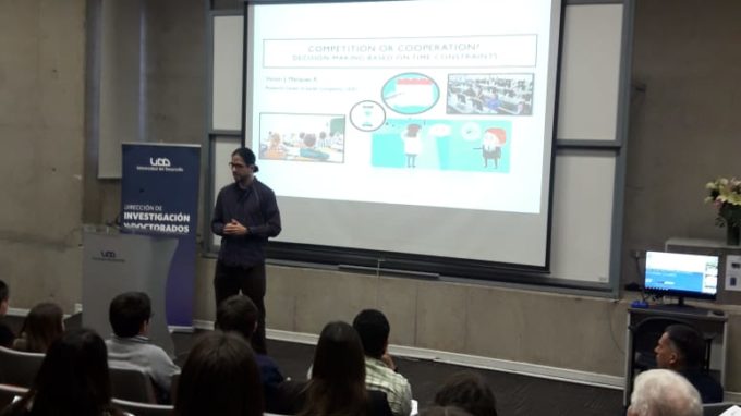 Within the Fair, the “3-minute Pitch” contest was carried out, where students from different Doctorates of the University, develop their investigations and present them in an open exhibition, in front of a jury. The exhibition made by Victor Marquez, from the Doctorate in Sciences of Social Complexity (DCCS) of the CICS, Competition or cooperation? Decision-making based on time constraint, was awarded the prize by the jury and the public, who evaluated the number and type of words used, design, color and size of the slide, images, positive and negative spaces, among others.