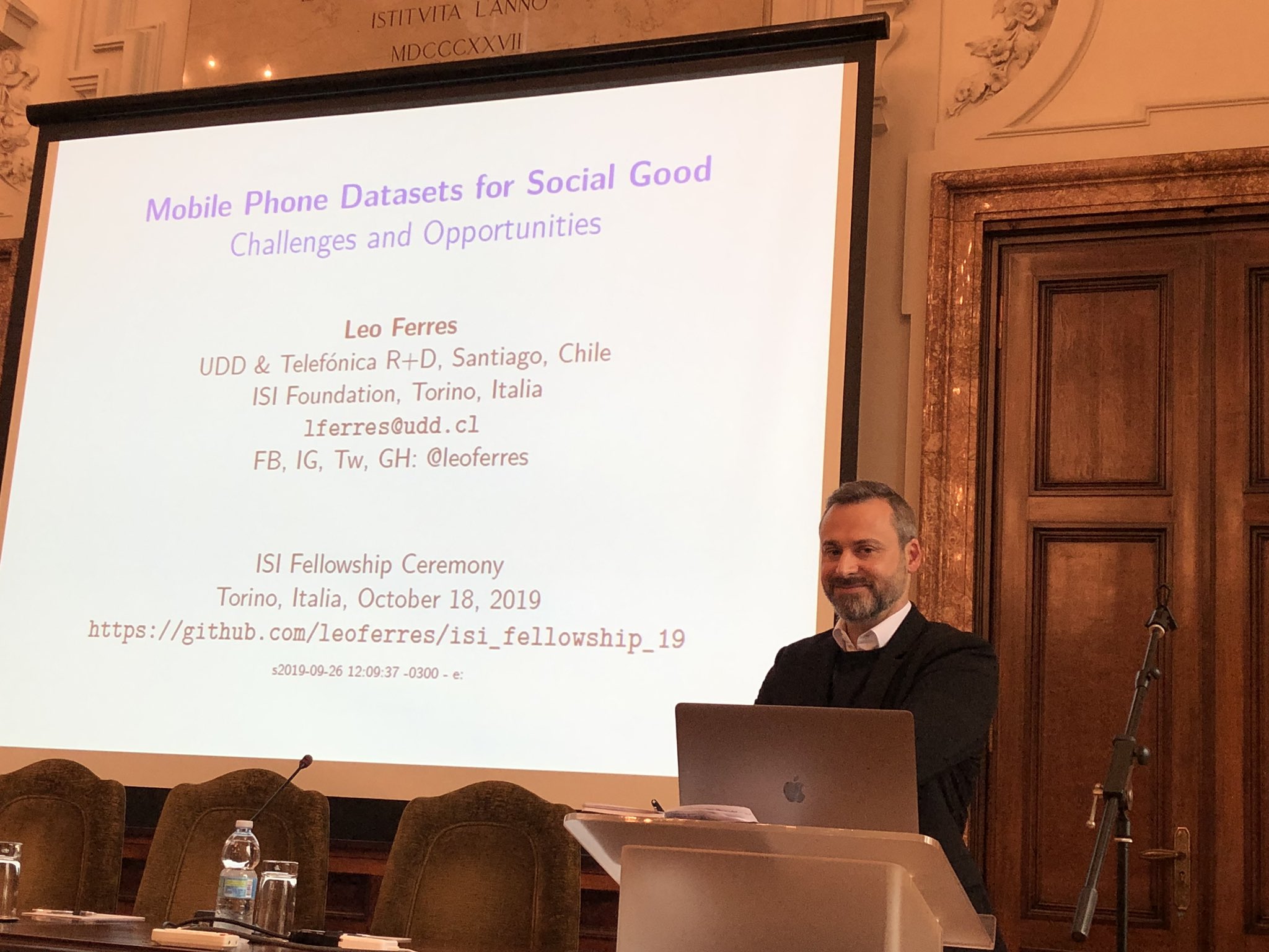 En su oficina del IDS ubicada en la Universidad del Desarrollo, Leo Ferres se ve contento. Hace unas semanas llegó de regreso desde Torino, Italia, tras recibir la membresía del programa ISI Fellow, un reconocimiento que selecciona a los mejores académicos internacionales para que sean miembros externos de la comunidad de investigación de la Fundación ISI durante tres años. En este reconocimiento, el científico es acompañado por Tina Eliassi-Rad (Khouri College of Computer Sciences, Northeastern University, Boston, EE.UU.), y Manish Saggar (Facultad de Medicina de la Universidad de Stanford, Stanford, EE. UU.).