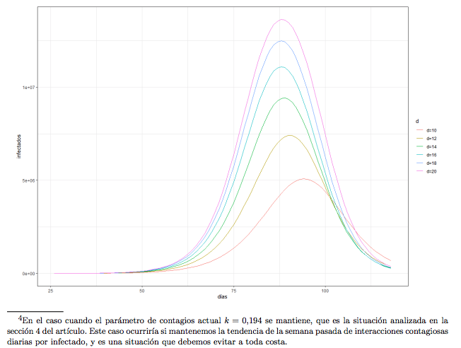 Section 4 uses real data in the simplified SIR model to predict how the COVID-19 will evolve in Chile if we continue at the same rate as before. At this rate, the prediction is a first peak of the disease between late May and early June. The number of cases would get out of control much earlier. In addition, it is explained why models such as SIR have exponential growth in initial stages.