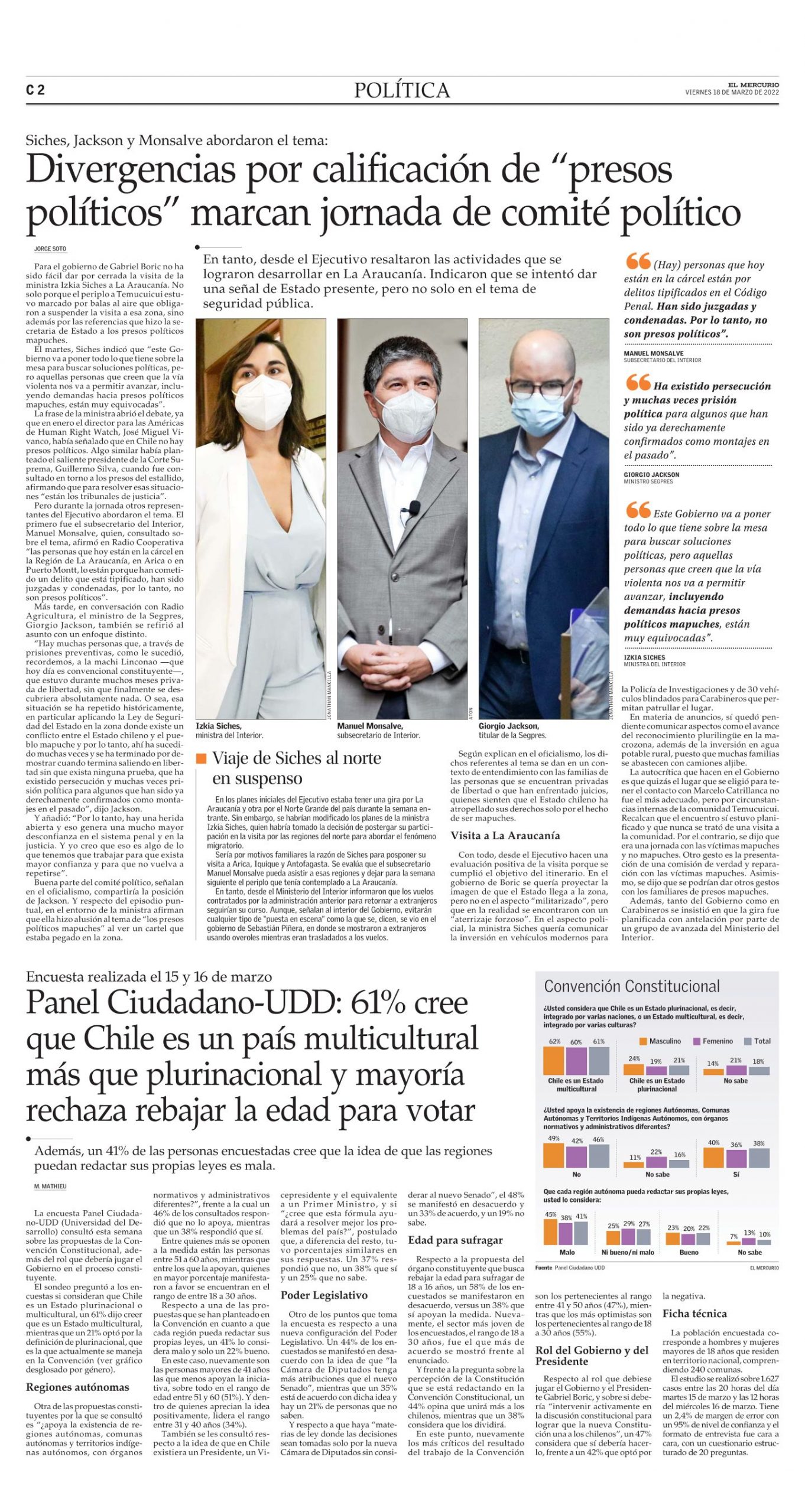 Panel Ciudadano-UDD: 61% cree que Chile es un país multicultural más que plurinacional y mayoría rechaza rebajar la edad para votar