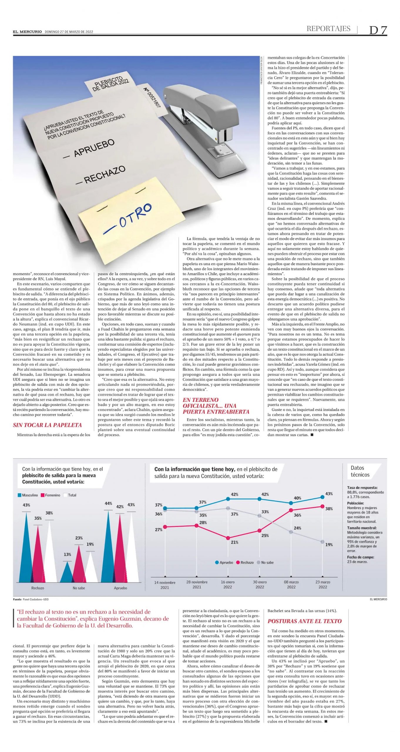 La medición realizada esta semana muestra que la ciudadanía no estaría del todo convencida de que introducir cambios en la papeleta sea una buena idea. Sin embargo, la mayoría se inclina en la dirección de explorar otros caminos, si la propuesta se rechazara. De momento, elegir nuevos convencionales es la opción que despierta mayor interés entre los consultados.
