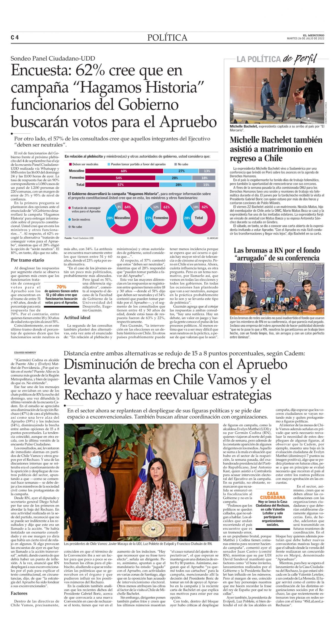 Panel Ciudadano: 62% cree que en campaña “Hagamos Historia” funcionarios del Gobierno buscarán votos para el Apruebo
