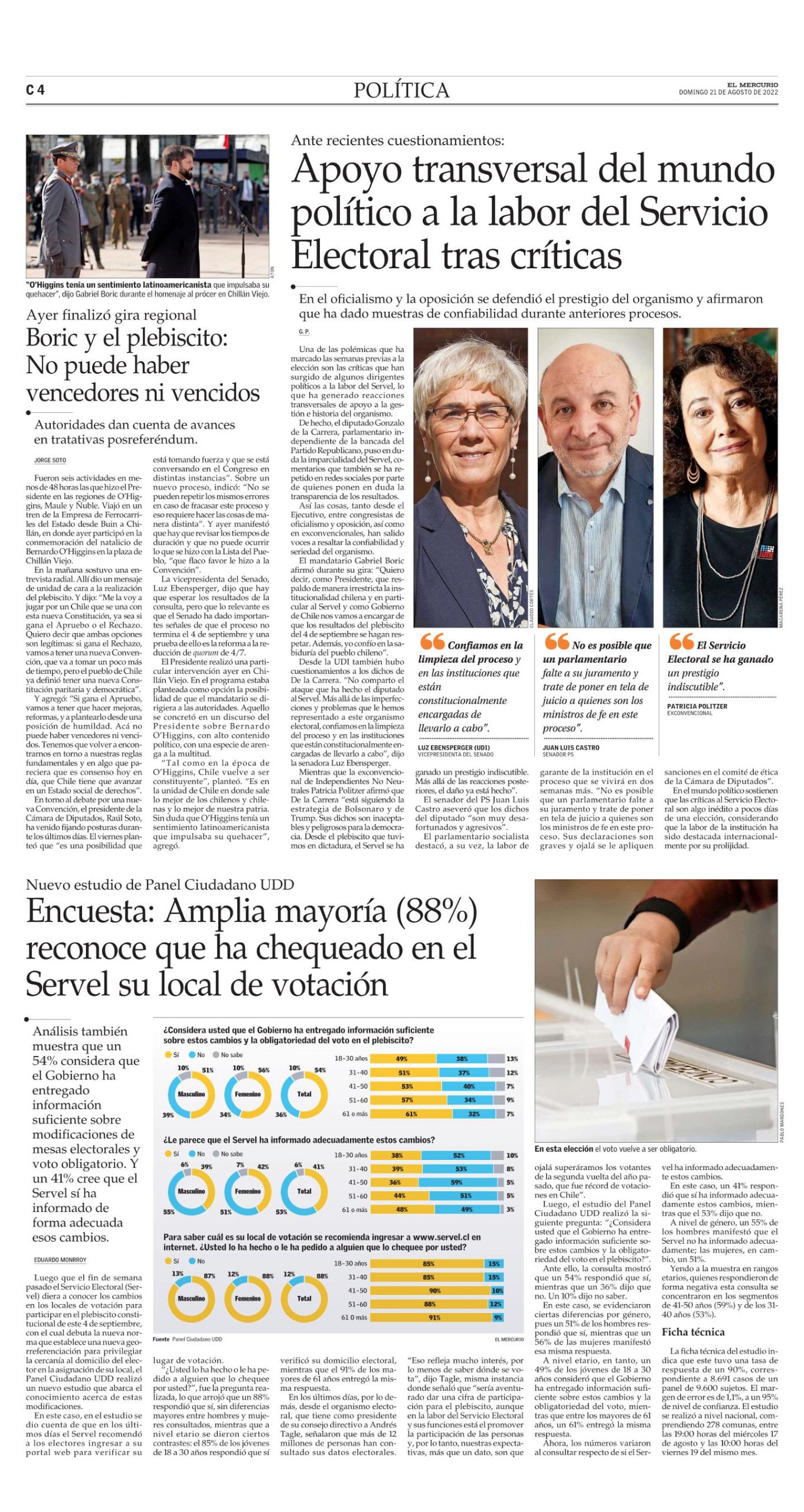 Panel Ciudadano: Amplia mayoría (88%) reconoce que ha chequeado en el Servel su local de votación