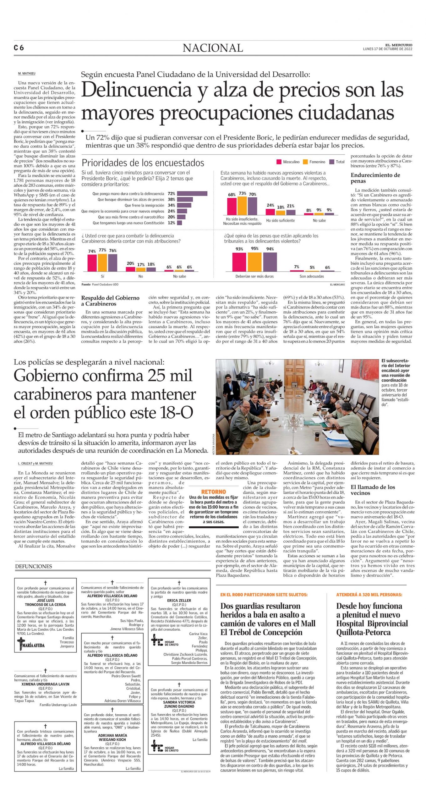 Un 72% dijo que si pudieran conversar con el Presidente Boric, le pedirían endurecer medidas de seguridad, mientras que un 38% respondió que dentro de sus prioridades debería estar bajar los precios.