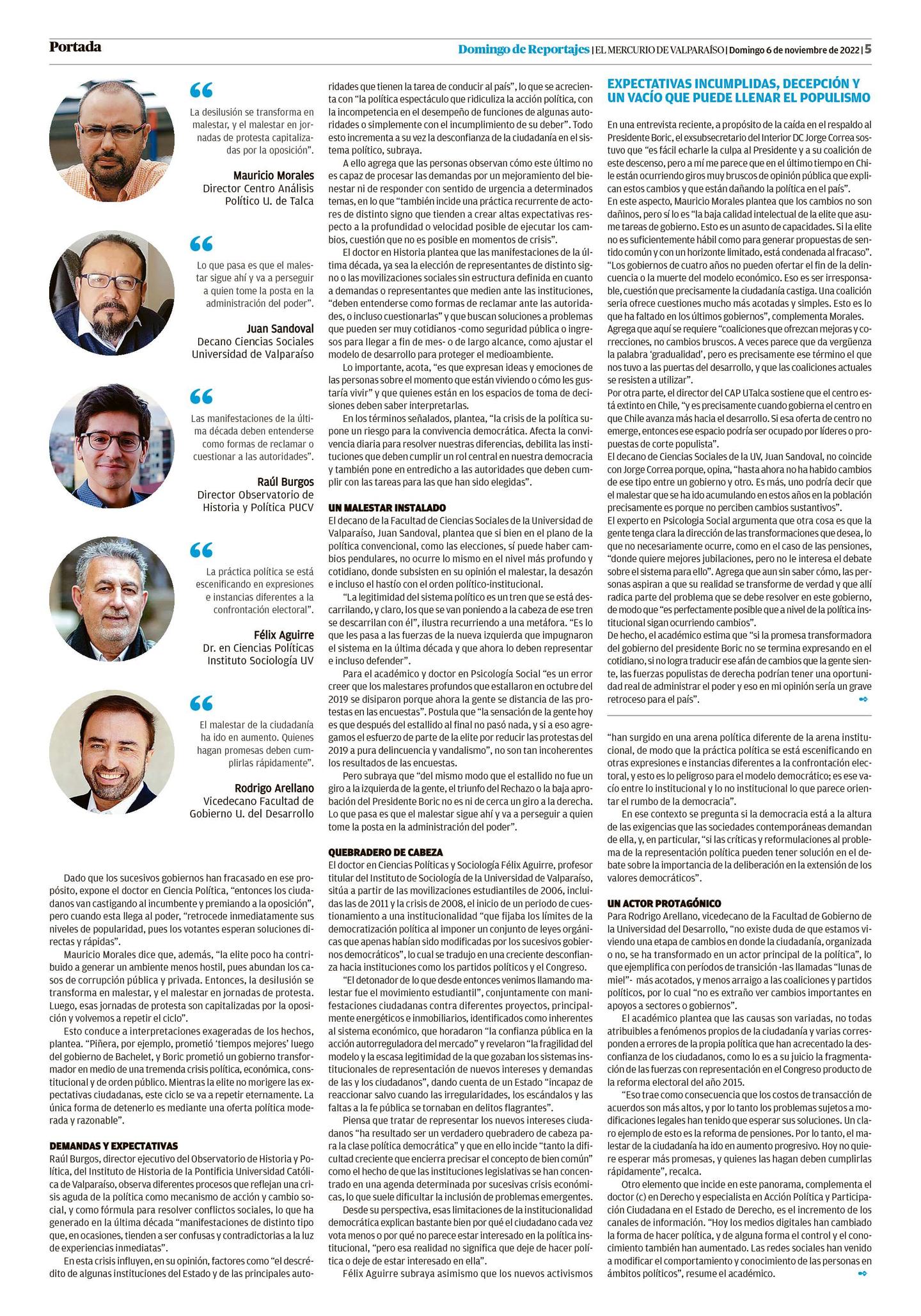 Medio: El Mercurio de Valparaíso Consultado: Rodrigo Arellano, Vice Decano de la Facultad de Gobierno UDD.