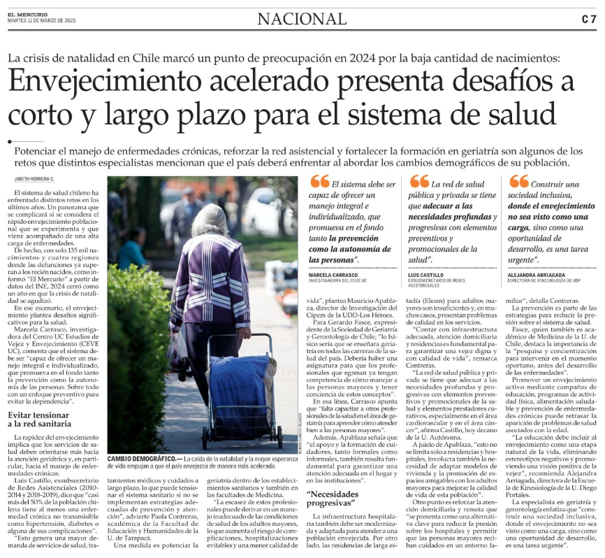 Mauricio Apablaza, director de Investigación del Cipem de la UDD-Los Héroes, advierte que la escasez de profesionales en geriatría puede generar un manejo inadecuado de la salud de los mayores, aumentando complicaciones y hospitalizaciones evitables.