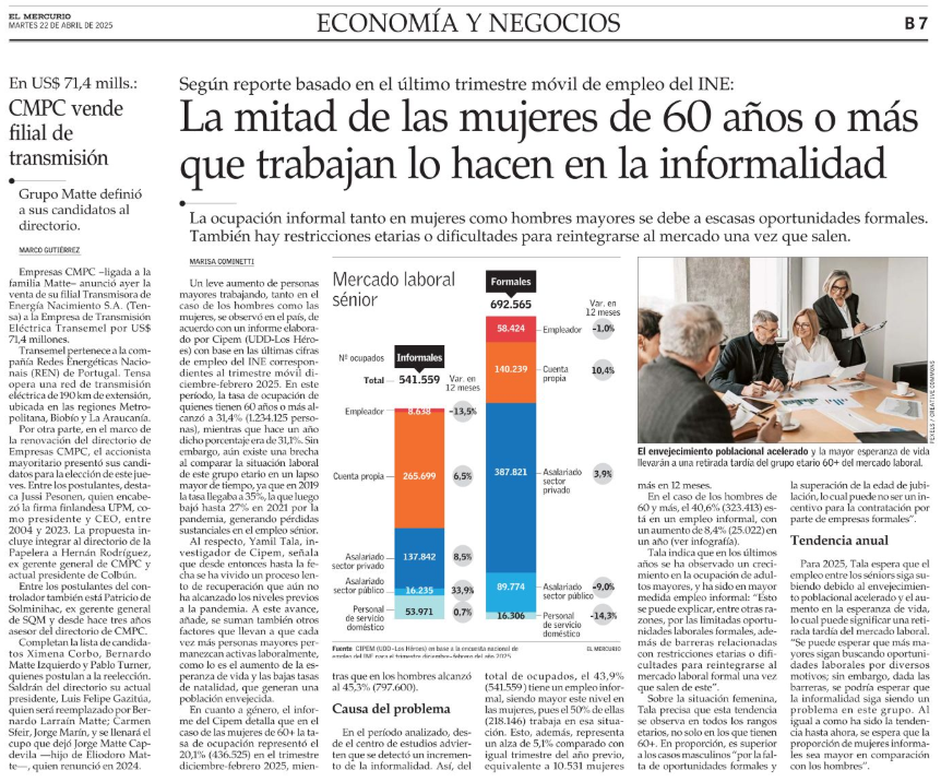 Yamil Tala, Investigador Programa de Conocimiento e Investigación en Personas Mayores (CIPEM), entregó declaraciones a El Mercurio sobre el último informe elaborado por CIPEM (UDD-Los Héroes).