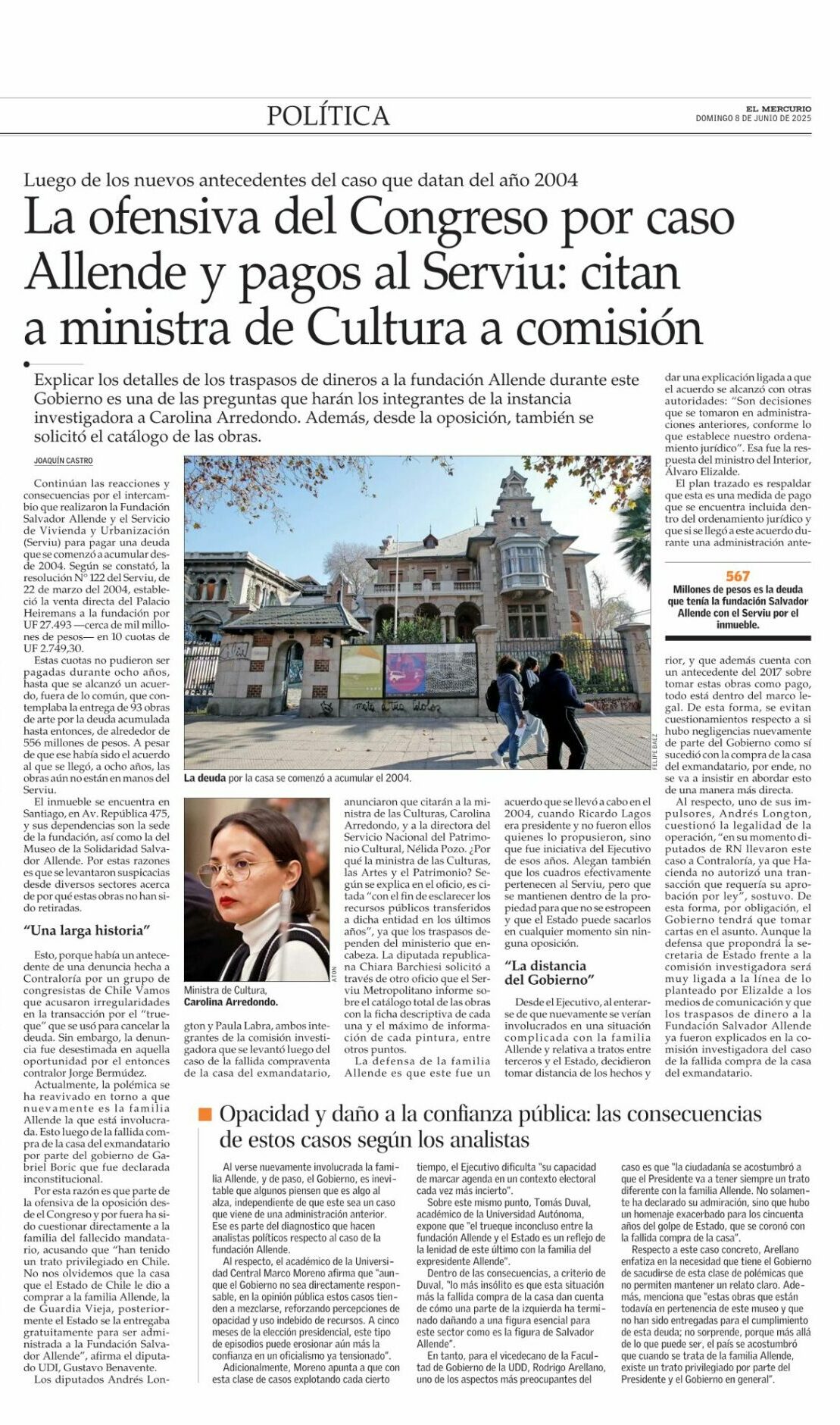 Respecto a este caso concreto, Arellano enfatiza en la necesidad que tiene el Gobierno de sacudirse de esta clase de polémicas que no permiten mantener un relato claro. Además, menciona que “estas obras que están todavía en pertenencia de este museo y que no han sido entregadas para el cumplimiento de esta deuda; no sorprende, porque más allá de lo que puede ser, el país se acostumbró que cuando se trata de la familia Allende, existe un trato privilegiado por parte del Presidente y el Gobierno en general”.