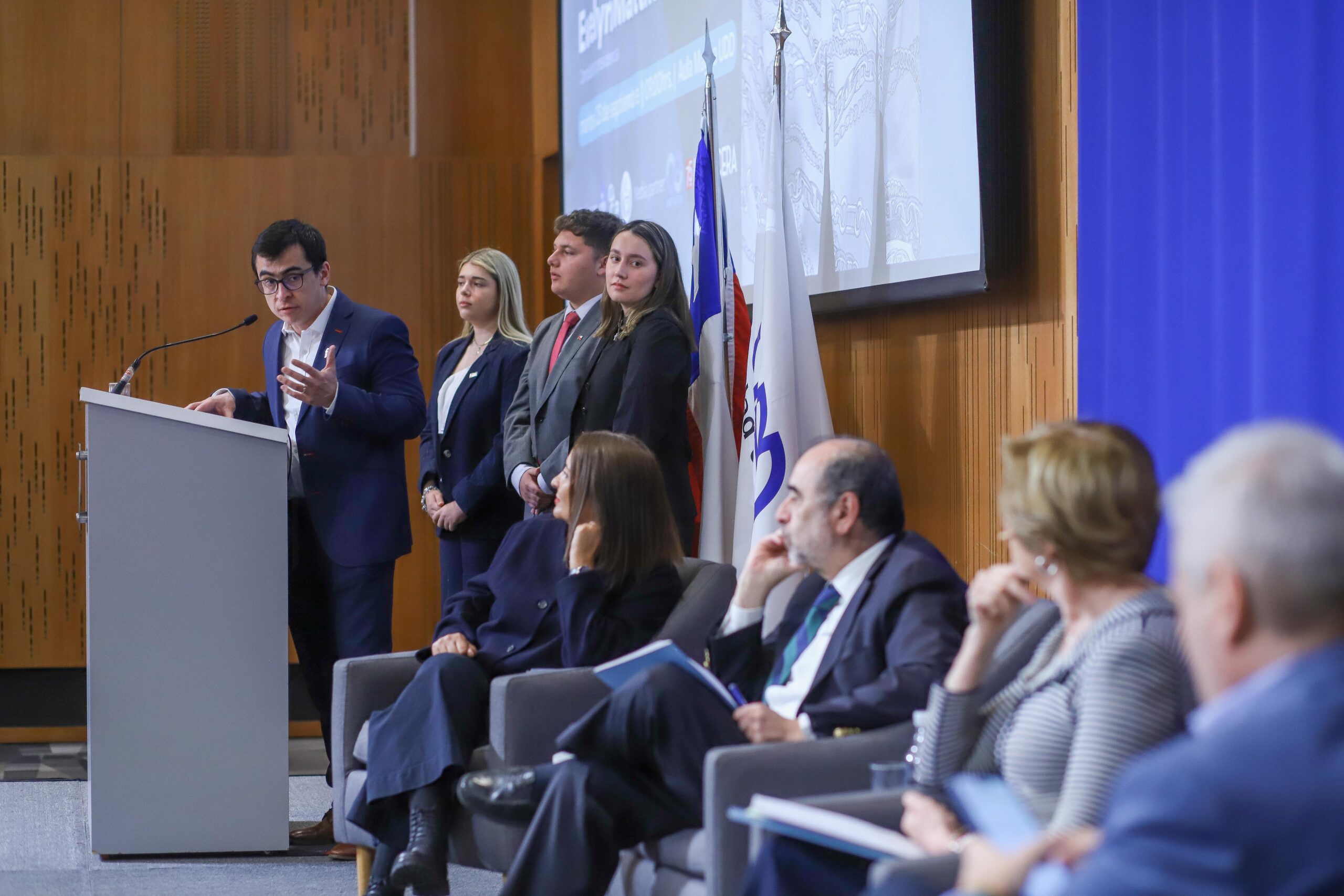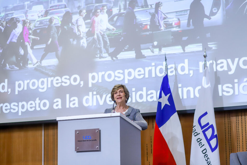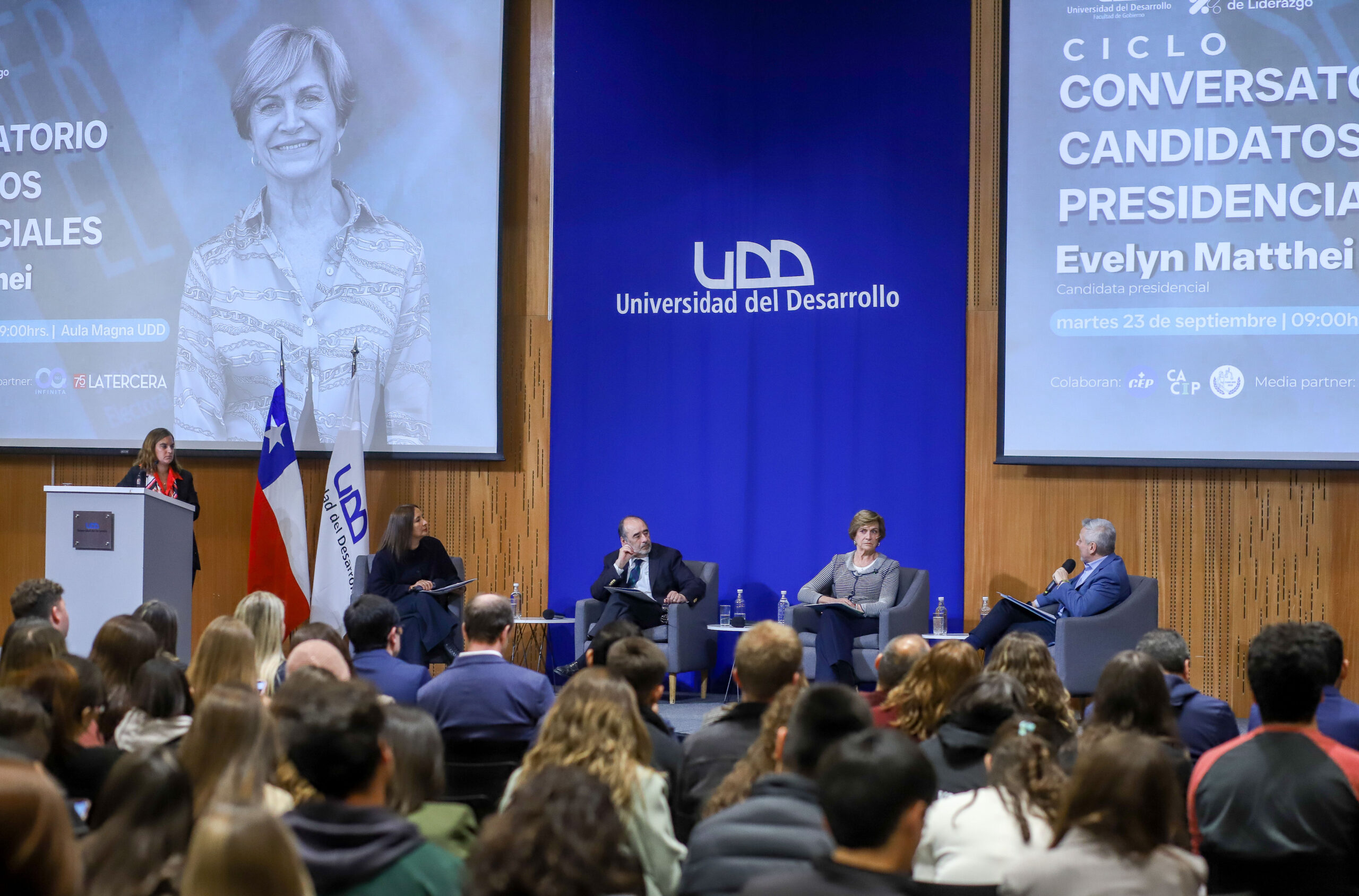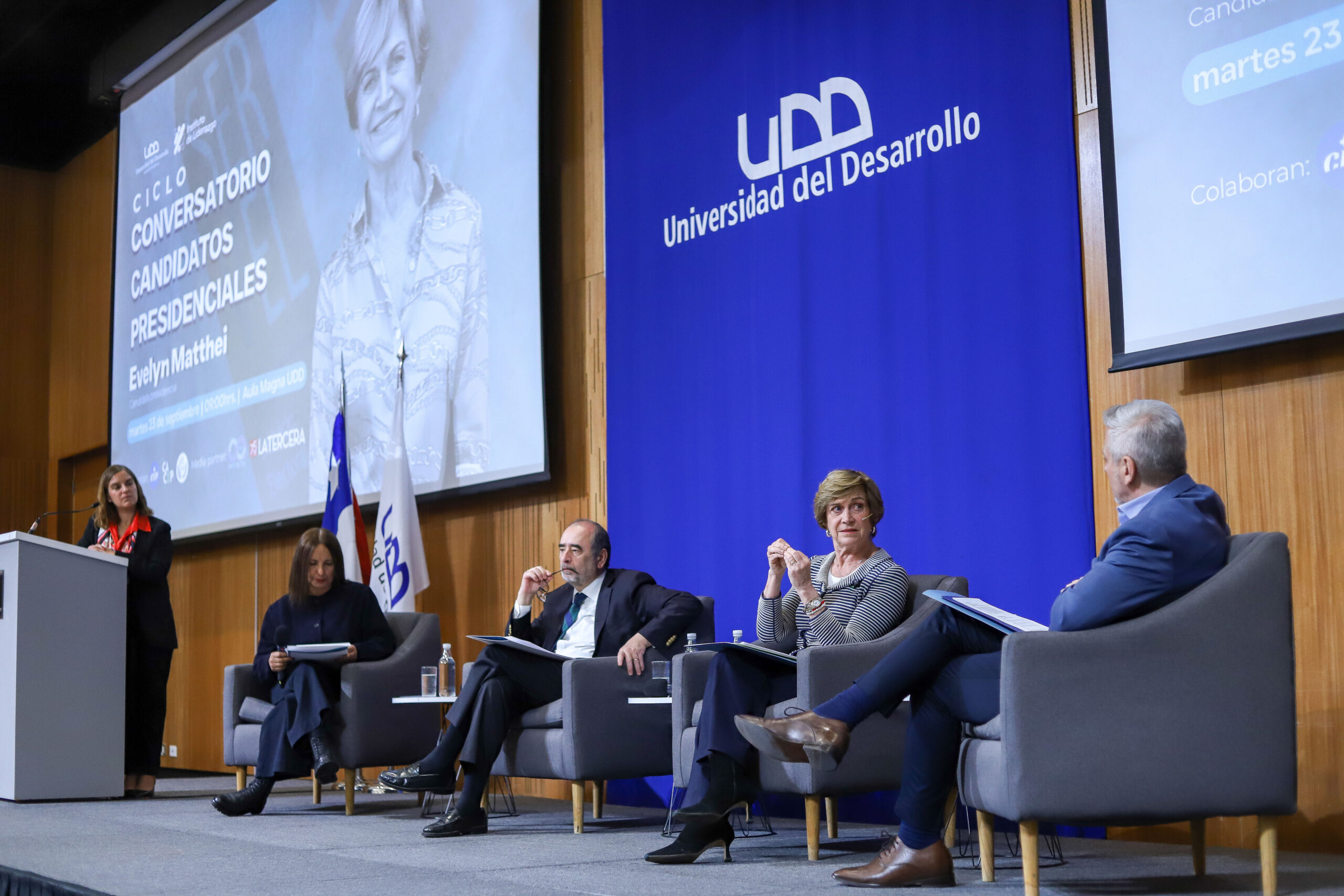 La candidata presidencial de Chile Vamos, Amarillos y Demócratas inauguró el Ciclo de Conversatorios Presidenciales organizado por la Facultad de Gobierno y el Instituto de Liderazgo de la Universidad del Desarrollo, en colaboración con La Tercera y Radio Infinita.