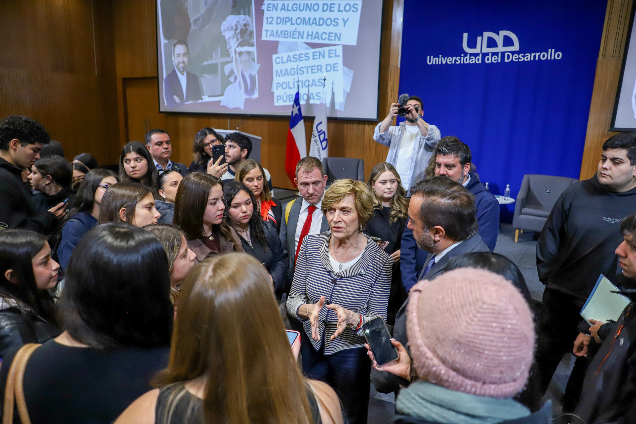 La exministra Evelyn Matthei participó este martes 23 de septiembre en la primera jornada de un ciclo de conversatorios con los aspirantes a La Moneda organizado por la Facultad de Gobierno UDD, donde la también exalcaldesa de Providencia expuso su visión de país y los principales ejes de un eventual gobierno, destacando la necesidad de construir acuerdos amplios: “No quiero un país polarizado, porque eso nos envenena a todos. Los que piensan distinto no son enemigos, son personas que han vivido algo diferente, y ese diálogo enriquece las propuestas”.