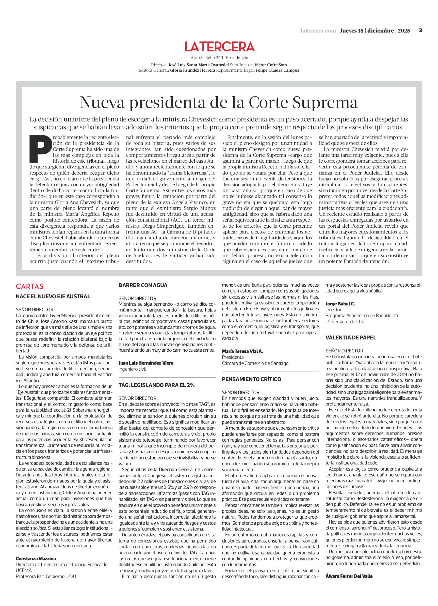 SEÑOR DIRECTOR: La reunión entre Javier Milei y el presidente electo de Chile, José Antonio Kast, marca un punto de inflexión que va más allá de una simple visita protocolar; es la consolidación de un eje político que busca redefinir la relación bilateral bajo la premisa de libre mercado y la defensa de la libertad.