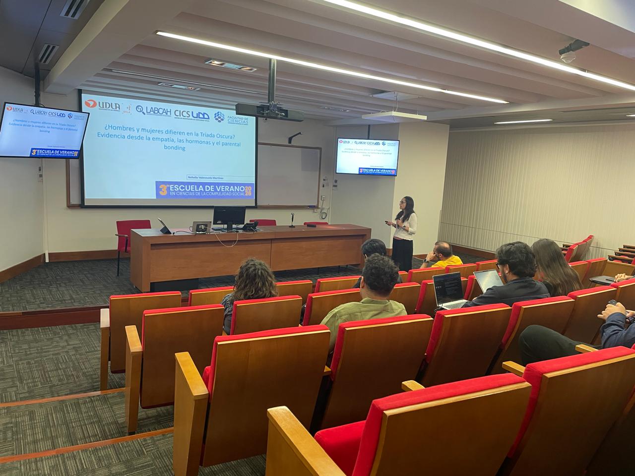 La Escuela de Verano contempló además presentaciones de investigadores del CICS, como la exposición de la Dra. Alejandra Figueroa titulada “Salud Cerebral y Complejidad: Descifrando las Conexiones que Estructuran Nuestra Cognición”, y el simposio “Diferencias sexuales en cognición social y comportamiento: de la infancia a la adultez”, que reunió a académicos del CICS UDD y de la Universidad de Las Américas, integrando evidencia neurobiológica, conductual y computacional.