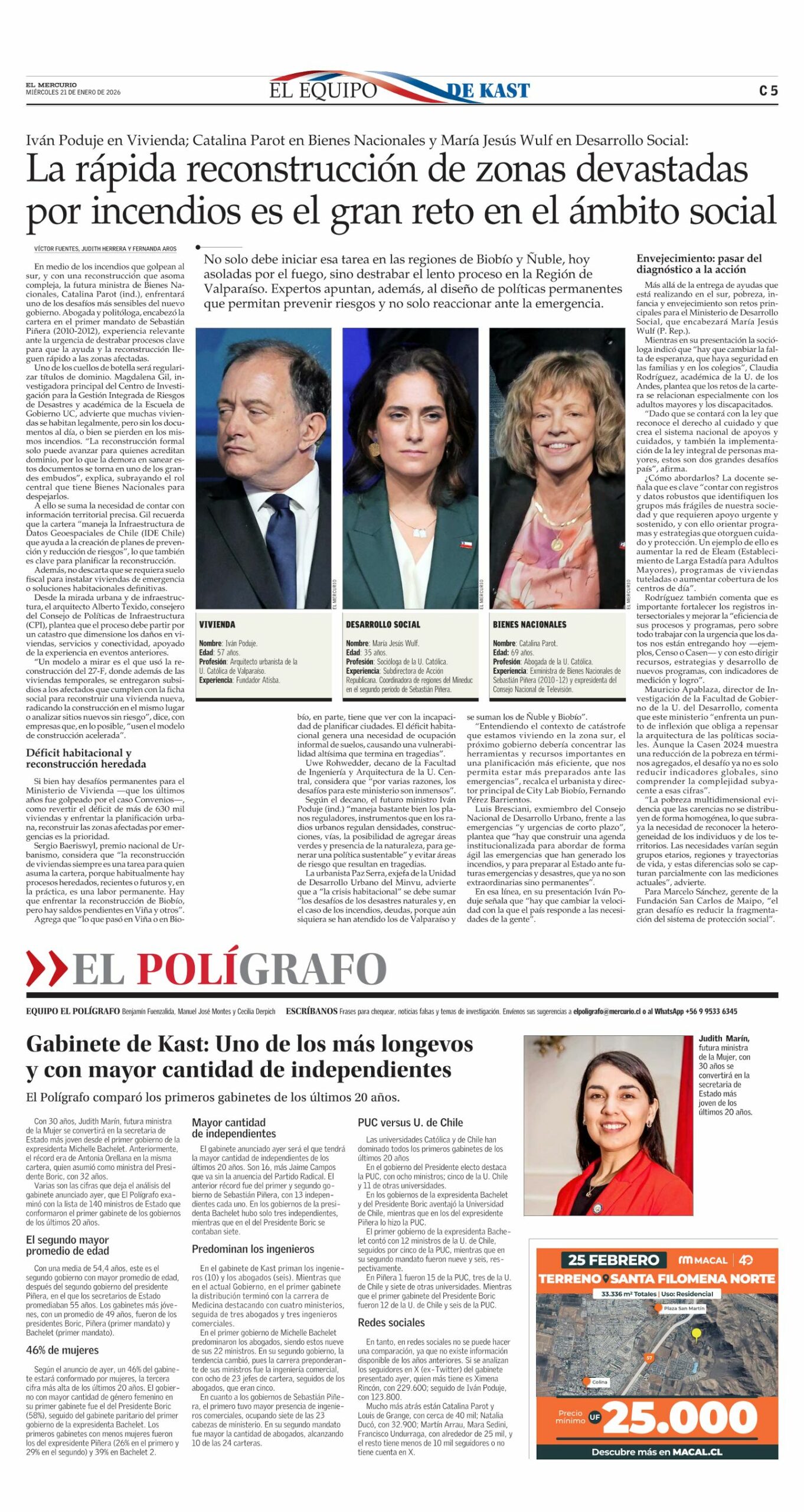 En medio de los incendios que golpean al sur, y con una reconstrucción que asoma compleja, la futura ministra de Bienes Nacionales, Catalina Parot (ind.), enfrentará uno de los desafíos más sensibles del nuevo gobierno. Abogada y politóloga, encabezó la cartera en el primer mandato de Sebastián Piñera (2010-2012), experiencia relevante ante la urgencia de destrabar procesos clave para que la ayuda y la reconstrucción lleguen rápido a las zonas afectadas.
