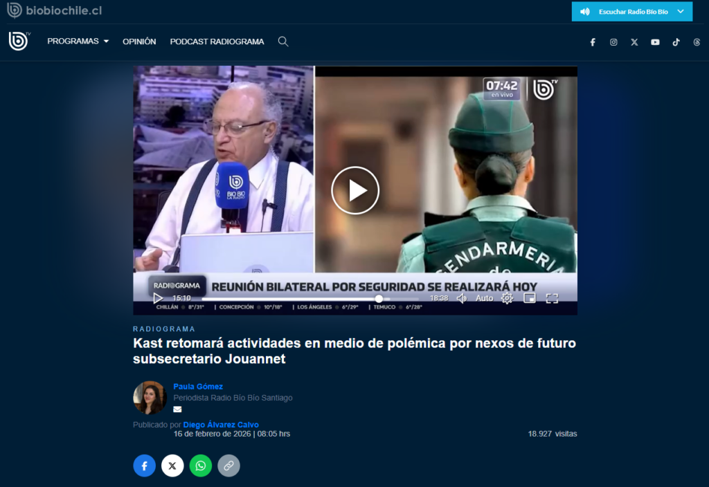 Nuestro director del Centro de Políticas Públicas y académico, Gonzalo Müller, entregó declaraciones para Radio Bio-Bio sobre la polémica designación del subsecretario Andrés Jouannet y la actitud que deberá tomar el Presidente electo, José Antonio Kast.
