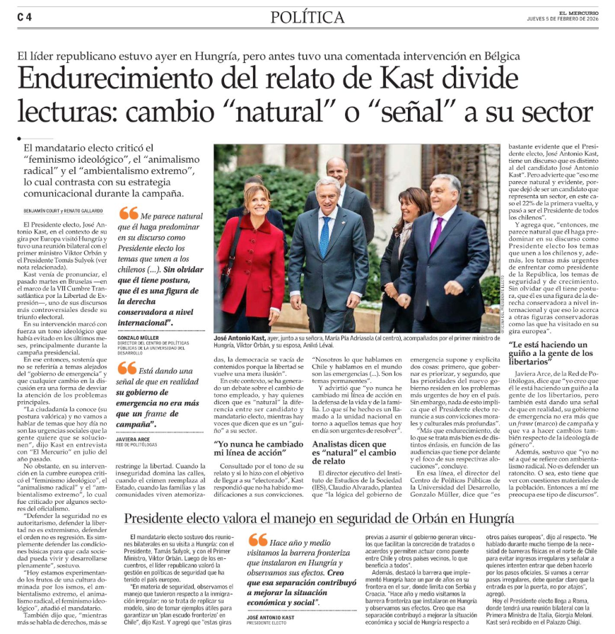 Nuestro director del Centro de Políticas Públicas, Gonzalo Müller, entregó declaraciones para El Mercurio sobre la visita del Presidente electo, José Antonio Kast, a Hungría y las señales que le entrega a su sector.
